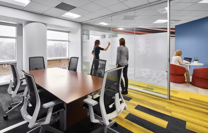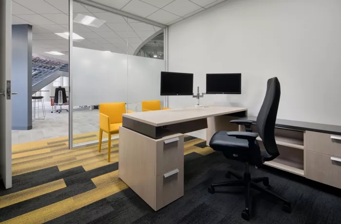 這里每一寸都為員工提供了一個支持他們成功的環(huán)境,依靠技術(shù)手段,打造鼓勵員工連接和溝通的氛圍。墻面白板、視頻會議室、各種空間和家具允許個人和團隊在辦公室內(nèi)的完美位置進行協(xié)作,當(dāng)然,如果想來一場即興的乒乓球比賽也未嘗不可。