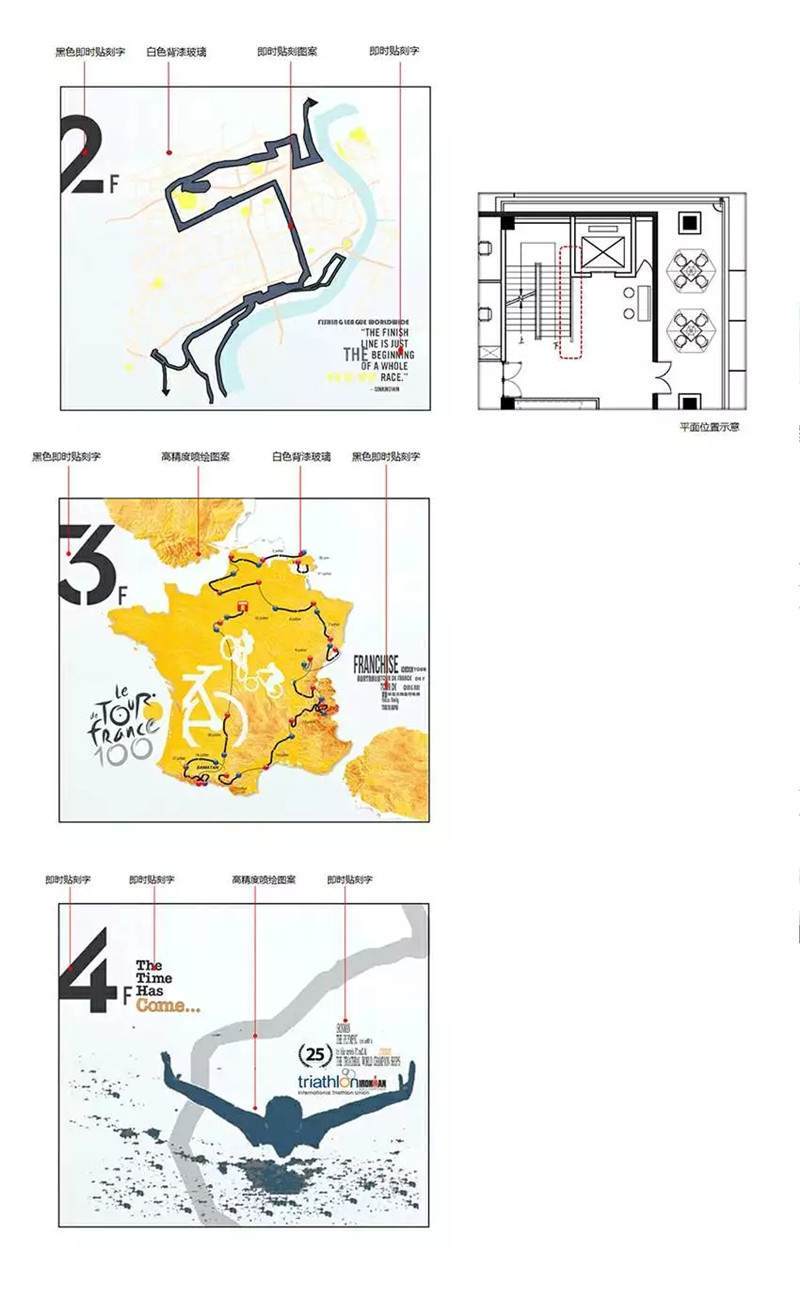 軟裝部分,這是幾層的設(shè)計稿,不同樓層的導視結(jié)合圖案以及主要的背景墻的主題。當時的設(shè)計文件實際的完成效果可以看出跟之前的設(shè)計稿基本上是完全一樣的,設(shè)計的時候也是因為都是用的矢量文件1:1的設(shè)計小稿,所以能保證完成后的效果。