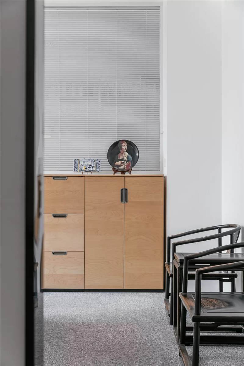 觸覺設(shè)計巧妙擷取文化于當(dāng)代都會空間,展現(xiàn)出雅致韻味的同時留下了更多觸碰的余地。綠植來點(diǎn)亮辦公場所的鮮活生命力,清逸的色彩是思想游龍的軌跡,在留白的空間中伸出觸角,觸覺所及之處,思維綻放遐想。