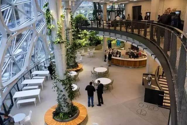 亞馬遜首席園藝師羅·戈里亞多(Ron Gagliardo)說:“我們把工作環(huán)境和自然聯(lián)系起來,讓大家遠(yuǎn)離普通辦公桌,在這里看不到辦公桌和小隔間。”
