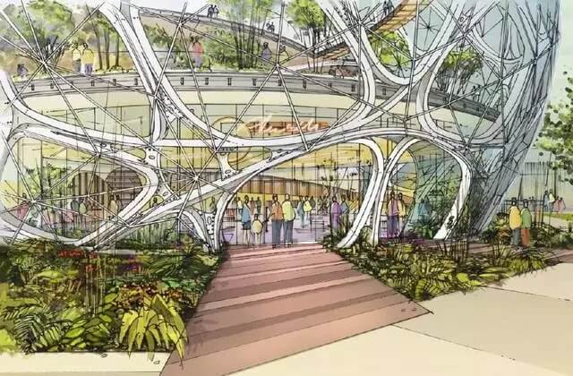 建筑方案草圖 “我們想要?jiǎng)?chuàng)造一些特別的東西,一些對(duì)于亞馬遜和西雅圖來說是標(biāo)志性的東西。”