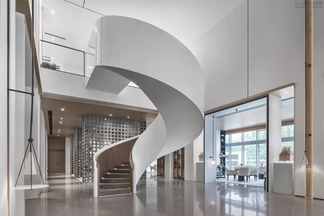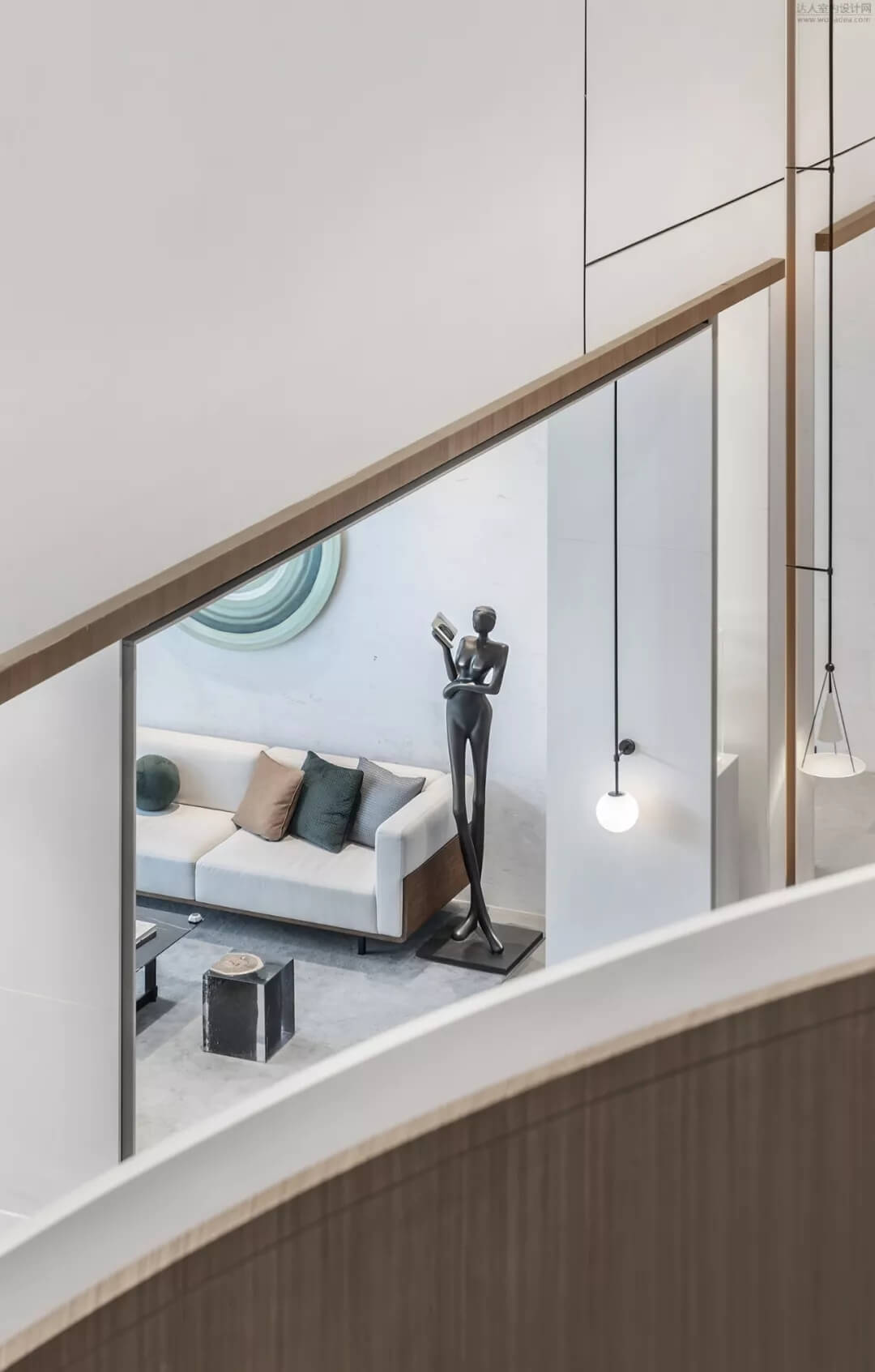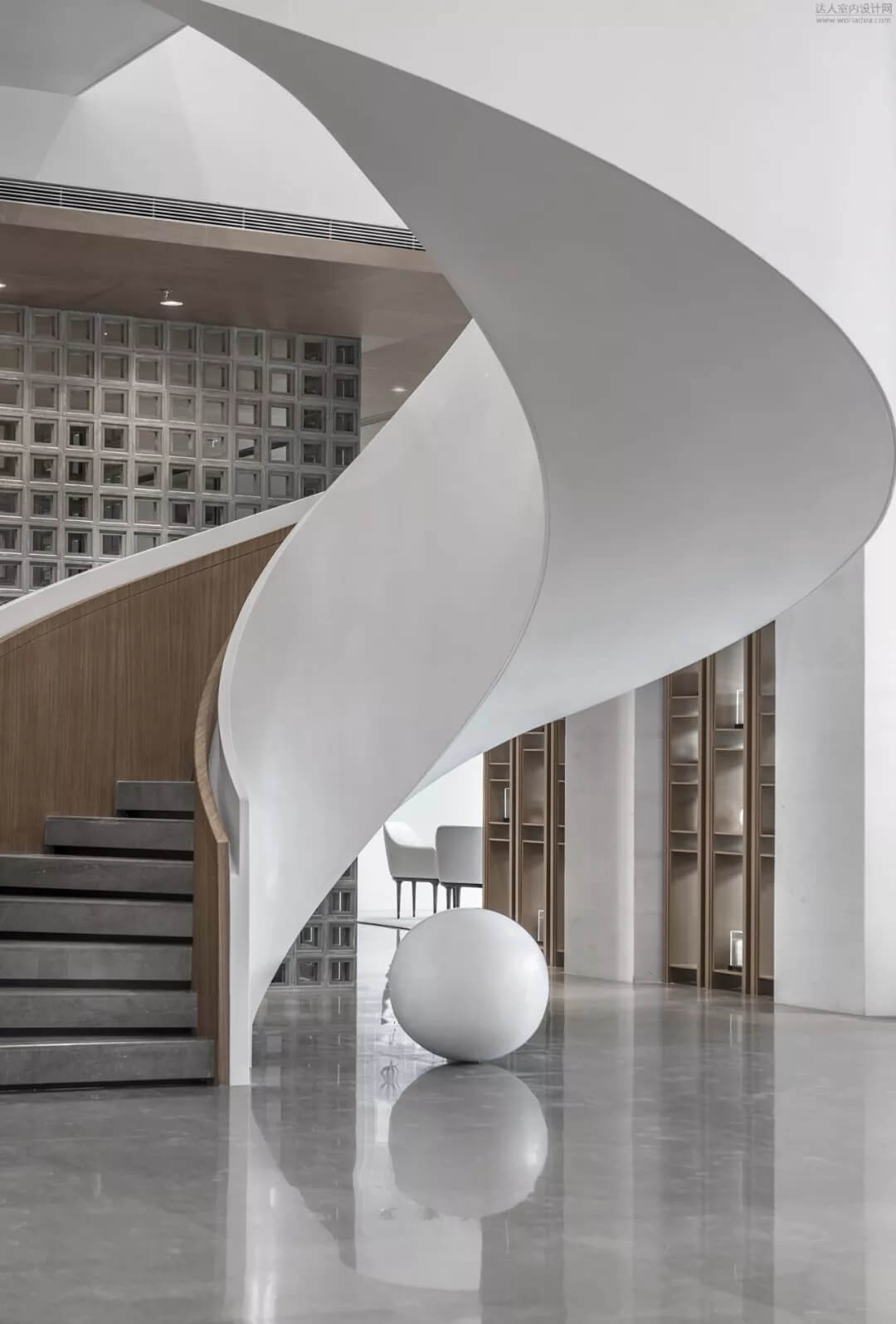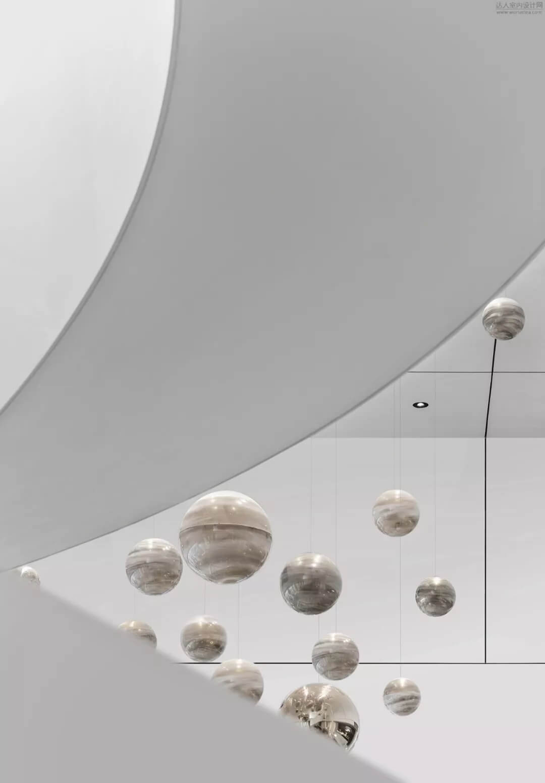 淡雅的白色配以溫馨木色的夢(mèng)幻般旋轉(zhuǎn)樓梯入口,白色球體與之呼應(yīng),旋轉(zhuǎn)而上,動(dòng)態(tài)感的景色盡收眼底,格子狀猶如延續(xù)的·星際穿越,感受平衡時(shí)空不同維度的交措時(shí)光,身處'空間',在無(wú)限與有限中穿梭,不經(jīng)意的轉(zhuǎn)角余光是同色的球燈相映,優(yōu)秀的設(shè)計(jì)師是會(huì)講故事的人。
