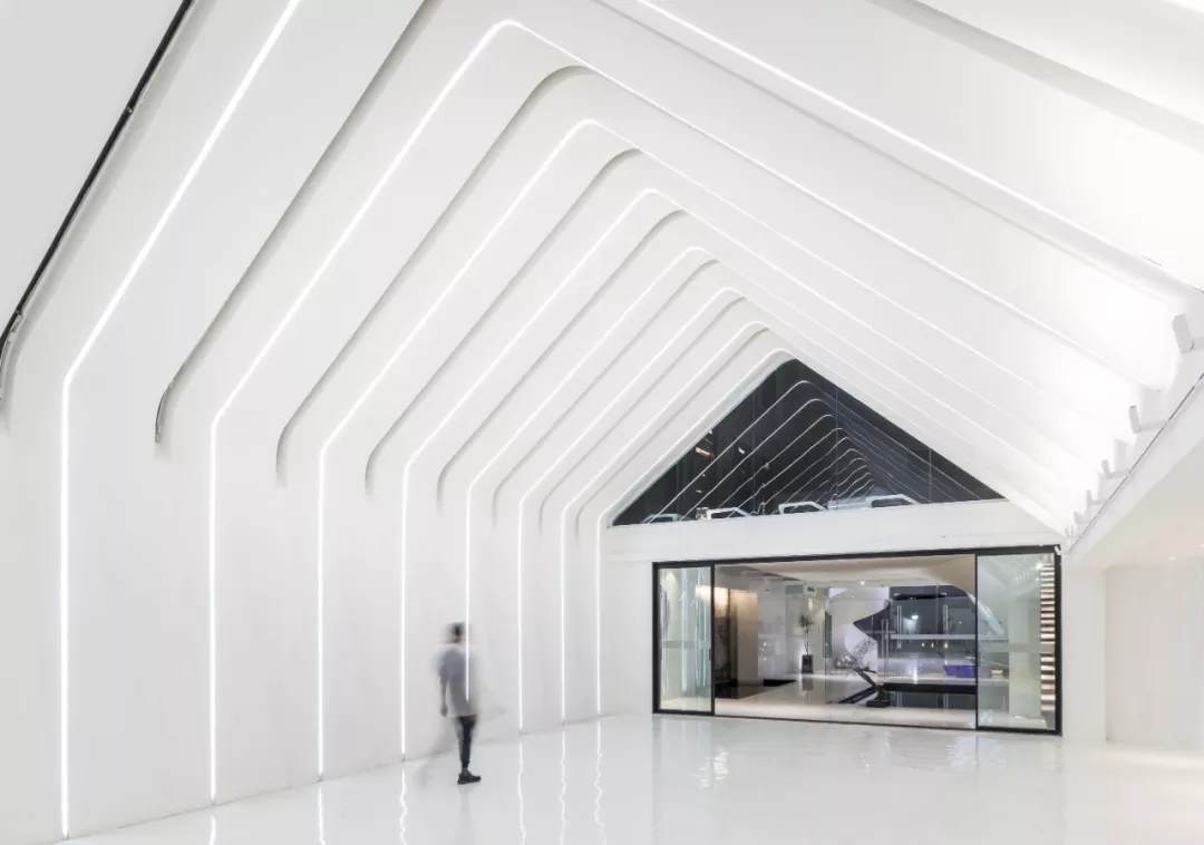 薄殼結(jié)構(gòu)與金屬幕墻構(gòu)成的“裙擺”創(chuàng)造出一層集合酒店接待、休憩與多功能廳的開放服務(wù)空間,漂浮為頂,下落為幕,抬升為廳,下沉為梯,旅客可以在裙擺之上游走,形成一條多變的觀景路徑,還原了山城的空間體驗(yàn)。