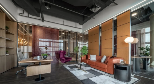 設(shè)計師鄭鴻基于客戶的品牌發(fā)展定位與審美藝識,以寶格麗風(fēng)格的古典奢華糅和現(xiàn)代主義的精簡,通過鮮明濃郁的色彩搭配,舒適且人性化的細節(jié),呈現(xiàn)華麗經(jīng)典的設(shè)計美學(xué),詮釋辦公新業(yè)態(tài),致敬精致迷人的寶格麗精神。