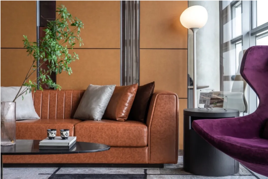 以寶格麗風(fēng)的橙色和黑色構(gòu)設(shè)起空間的精尚品位,同時通過薄暮紫和優(yōu)雅棕營造舒適雅致的氛圍。