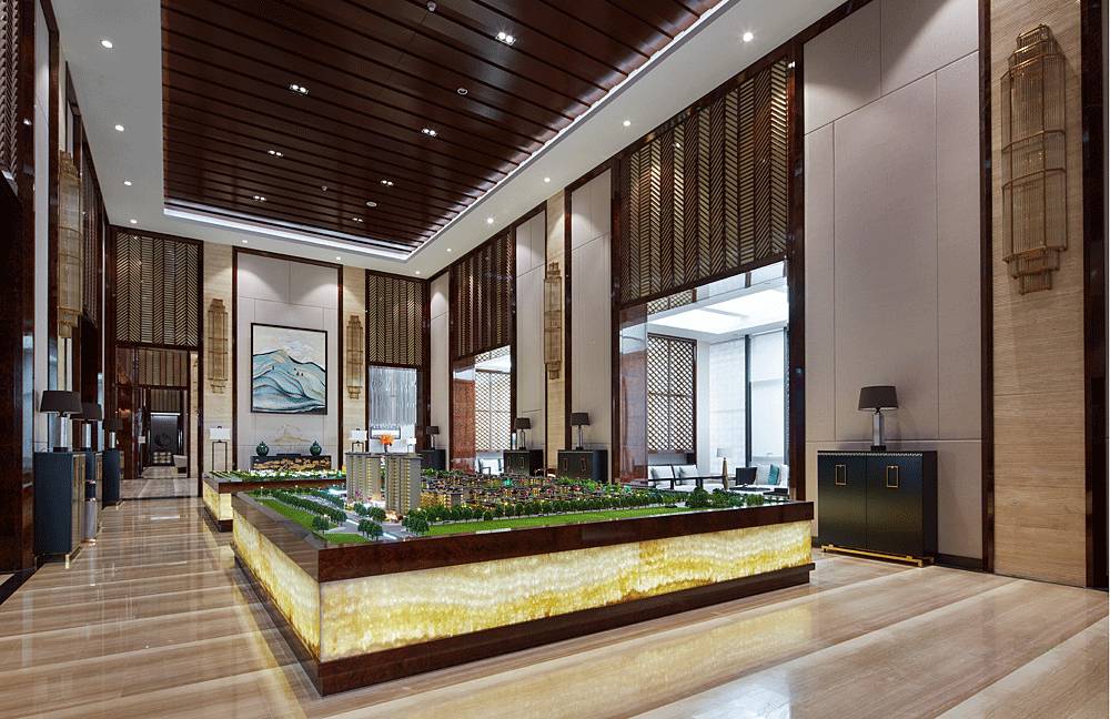 沙盤區(qū)采用簡單、大氣的設(shè)計(jì)手法,沒有濃墨重彩的奢華場景,更多的是將歷史古都的韻味帶到細(xì)節(jié)中,如格柵、窗欞、黛青色擺件、意境掛畫等東方元素都透露著古韻,并融入大理石、玻璃、燈帶等現(xiàn)代材料,在營造意境的同時兼顧場所的使用功能。