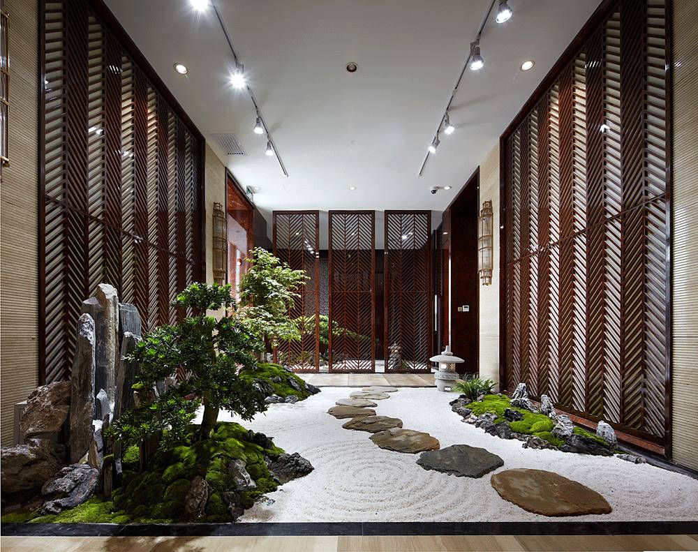值得一提的是,走廊干景步道的景觀軟裝,一個集觀賞、生態(tài)、自然于一體的設(shè)計(jì)。小巧石籠、粒徑不等的灘石,旱濕均可培植的苔草地被,有機(jī)地組合在一起傳遞古樸自然的審美趣味,讓營銷中心的意境之美濃郁幾分。
