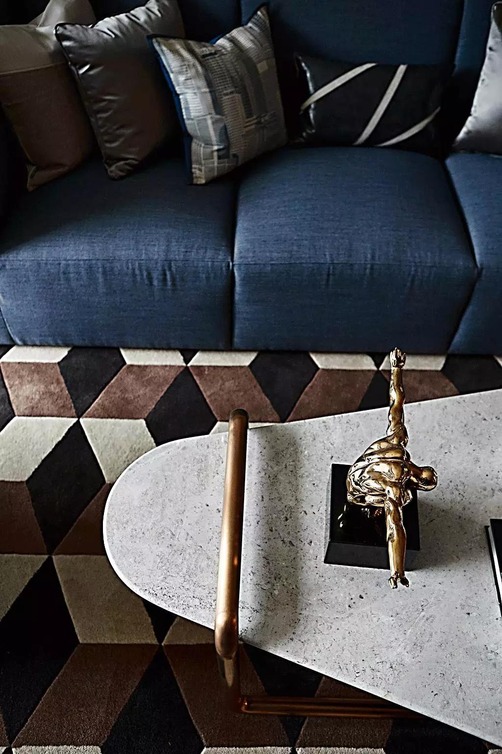 在高級灰的主調(diào)下,任憑灰藍、灰咖、米灰自由穿梭。金屬與大理石外表下的冷酷質(zhì)感、紡織布藝的溫柔親膚與皮革制品帶有的手工溫度,交纏錯綜,剛?cè)嵯酀6ㄖ票跔t與優(yōu)雅的Minotti沙發(fā),隱約顯露出居所主人優(yōu)越的品味。